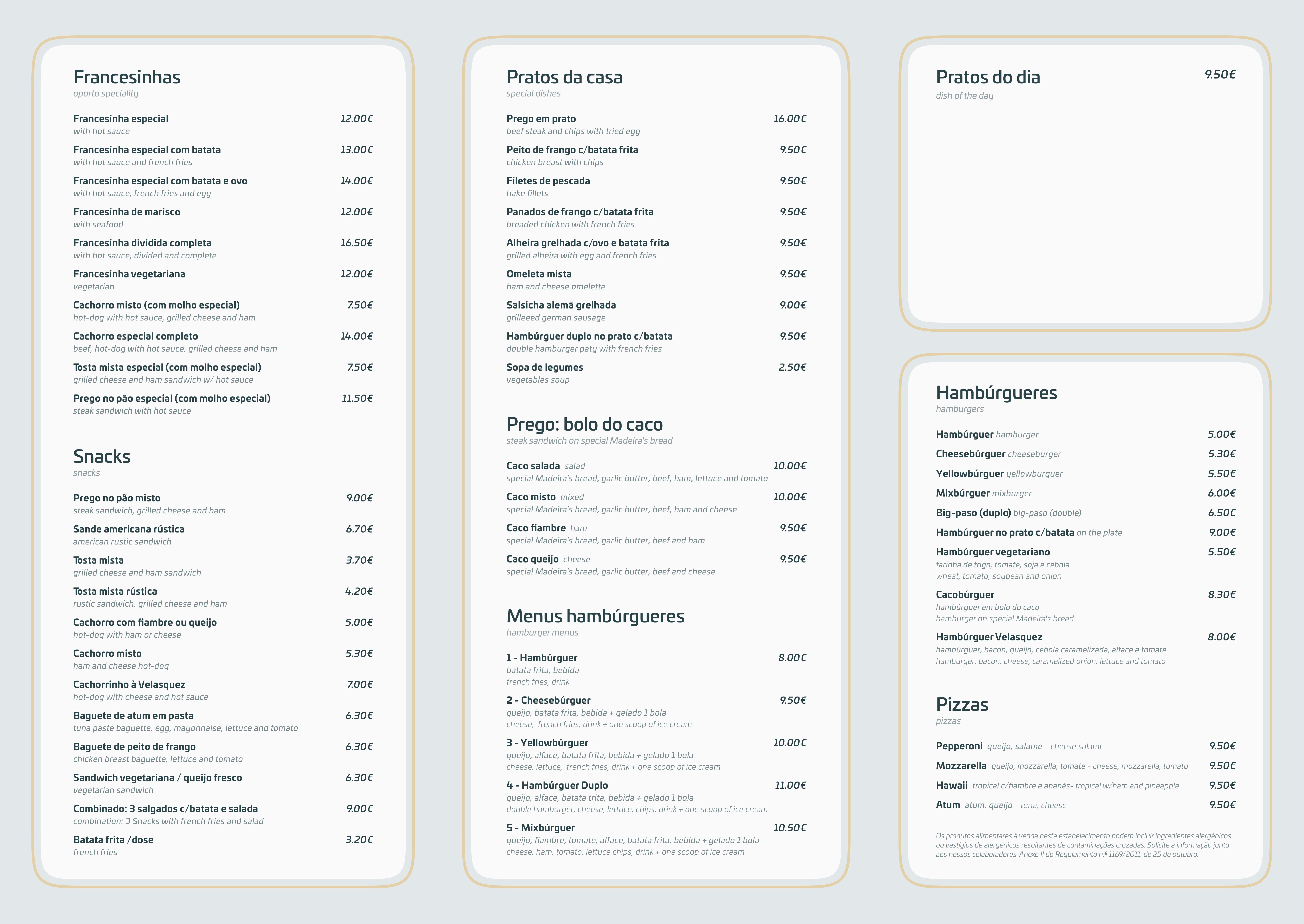 Pratos típicos portuenses diferentes todos os dias e ainda todas as opções Snacks.